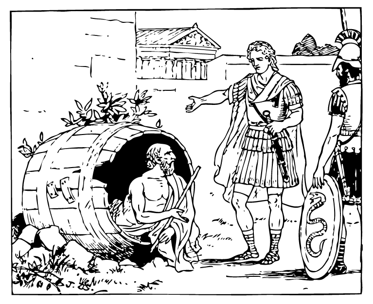 Diogenes, in his barrel, and Alexander the Great. Diogenes has been a patron saint of Other Life from the beginning. Alexander famously said that if he were not Alexander, he would wish to be Diogenes.