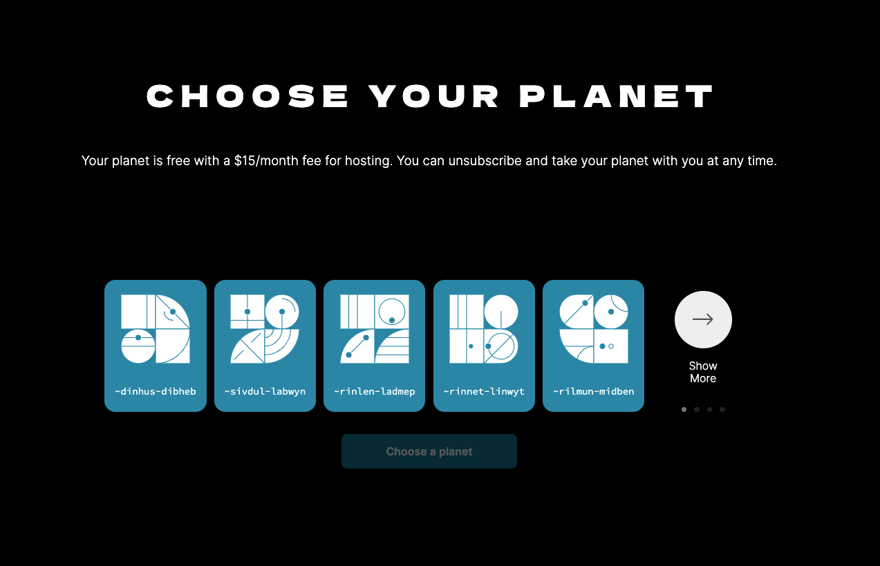 Tlon Hosting, Holium’s Realm app, and Tirrel’s Planet One all offer near-instant and seamless onramps for around $15/month.